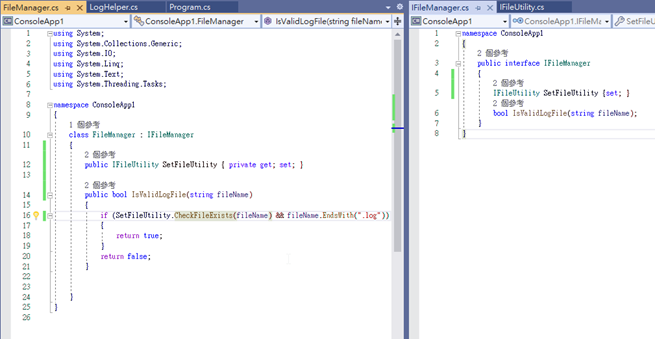 把具體實抽離到FileManager,在method中注入IFileManager。