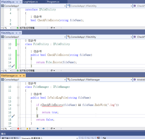 將IFileUtility屬性注入進來後間接呼叫CheckFileExists方法